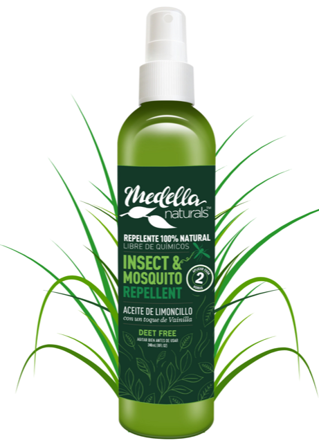 El ingrediente activo del repelente Medella Naturals es lemongrass (limocillo) el cual ha sido estudiado y aprobado como repelente contra insectos y mosquitos. Un estudio realizado por el Äsian Pacific Journal of Biomedicine¨confirmó la efectivad del liomncillo contra varios tipos de mosquitos entre esos el Aedes Aegypti (zancudo que transmite enfermedades como zika, dengue y chikunguña). Para segurar su efectividad, debes seguir las instrucciones de uso.